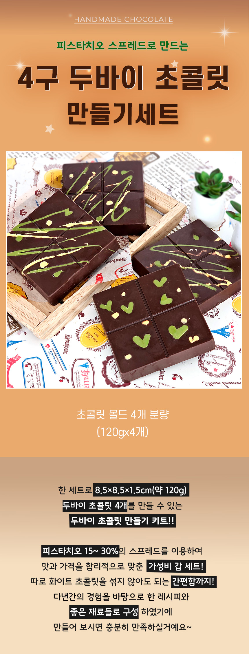 - ¾à 120g (8.5x8.5x1.5cm) µÎ¹ÙÀÌ ÃÊÄݸ´ 4°³ ºÐ·®ÀÔ´Ï´Ù.